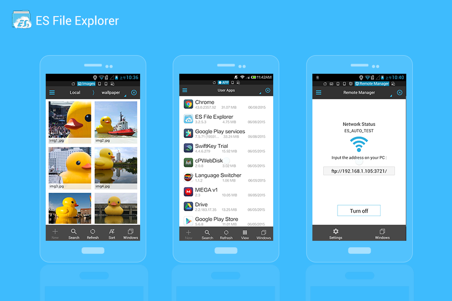 ES File Explorer es gratuito, destacado todo-en-uno administrador de archivos & administrador de aplicaciones & administrador de tareas & cliente de almacenamiento en la nube (Dropbox, Google Drive, SkyDrive, Box.net, Sugarsync, Yandex, Amazon S3) & cliente ftp & cliente samba que permite explorar tus fotos, musica, videos, documentos & otros archivos en su telefono y en su ordenador. Permite a los usuarios de Android desde cualquier lugar en el mundo administrar sus recursos totalmente gratis, puede ver todos sus archivos en un solo dispositivo, permitiendole acceder a ellos desde cualquier lugar y compartirlos con otros, es fácil de administrar, permanezca conectado usando 3G, EDGE o Wi-Fi, y comparta con sus amigos, suba fotos y vea videos.