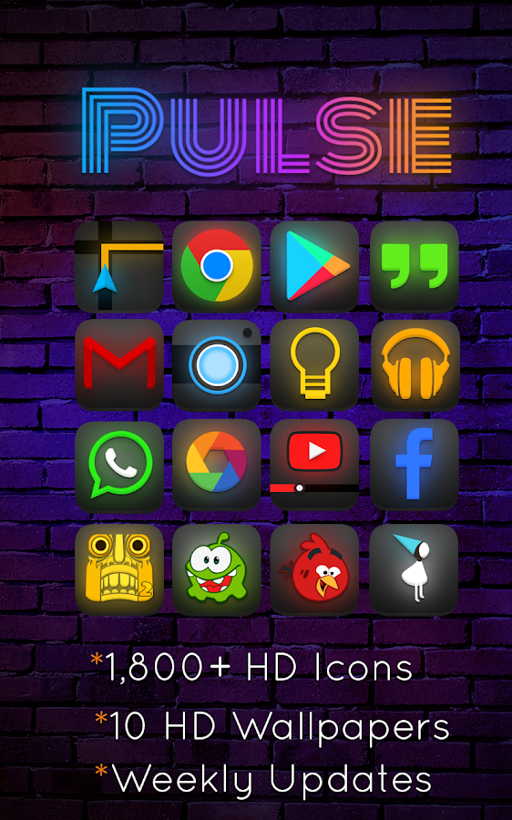 Hemos fusionado juntos la perspectiva 3D que se encuentra en nuestro tema Vibe, elementos oscuros, y un efecto único resplandor de neón. Pulso realmente cobra vida cuando se combina con los papeles pintados más oscuros que hemos incluido para usted. Buscando una manera de establecer la pantalla de inicio, aparte de los demás? El pulso es la elección perfecta.