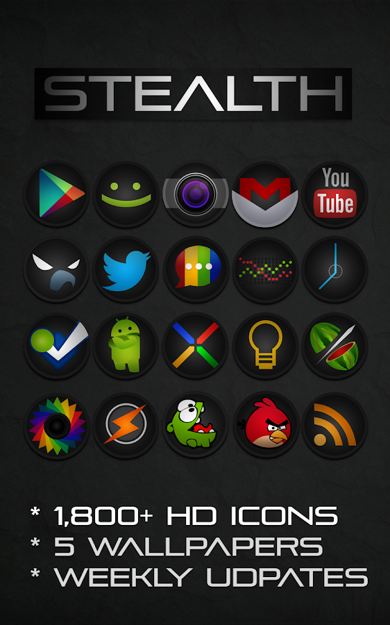 Todos los iconos de la cautela usan colores vibrantes combinados con sombra oscura de un estilo ultra elegante. El icono de forma redonda tiene un efecto único 3D para ayudar a enfatizar los iconos en una variedad de fondos de pantalla. Buscando el mejor paquete de iconos oscuro? Lleve el dispositivo al lado oscuro con cautela!