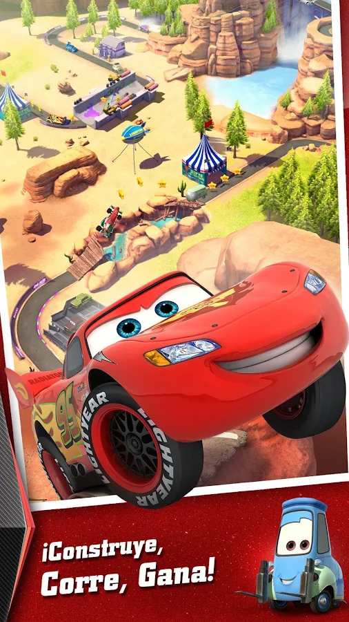 ¡Compite metiéndote en la chapa de los populares personajes de Cars en carreras superveloces y a tope de nitro! Construye tu propio Radiador Springs, hogar de Rayo y sus colegas. ¡Es tu oportunidad para brillar y correr tan rápido como Rayo!