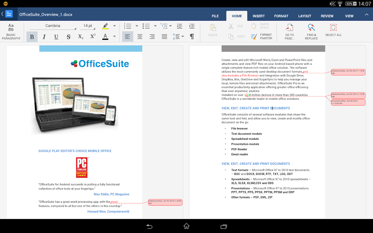 OfficeSuite permite que ver, editar y crear documentos de Word, Excel y PowerPoint, convertir de/hacia PDF y administrar los archivos con la solución de oficina con las funciones más completas que ha para Android. Precargada por los principales fabricantes como Sony, Amazon, Acer, Alcatel, Toshiba, Sharp, YotaPhone, Kyocera y otros.