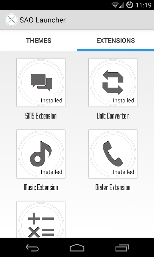SAO está diseñado para ser extensible. Hay muchos temas y extensiones gratuitas y de pago disponibles en la tienda. Temas actualizar las imágenes, los sonidos y las fuentes utilizadas en la aplicación de la creación de una experiencia completamente diferente. Extensiones, por otro lado, son orbes adicionales que aparecen cuando la descarga de otras aplicaciones. SMS, por ejemplo, es una extensión gratuita para los teléfonos.