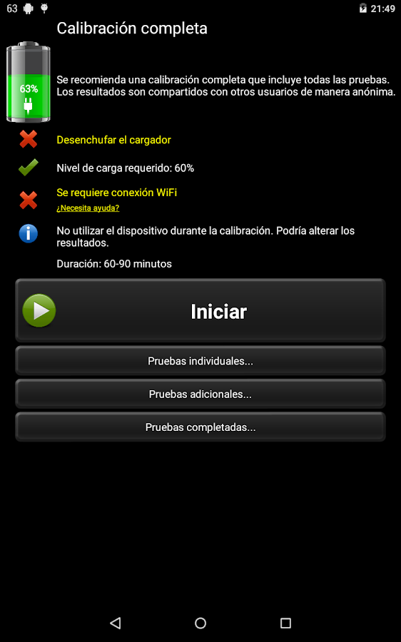 Si tiene un dispositivo nuevo o raro, por favor ejecute las pruebas de calibración ¡para compartir sus resultados con la comunidad y hacer esta aplicación aún más precisa!