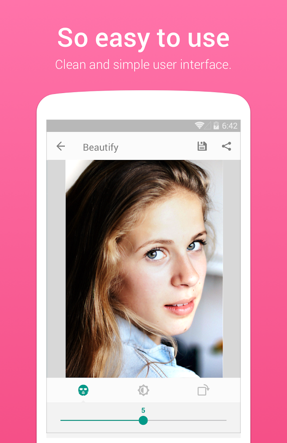 Belleza Cámara ayudará alisar la piel en un segundo después de tomar una foto de ti misma o selecciona una foto que hace que tomar fotos de ti misma más fácil y divertido.