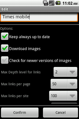cuando está en lÃnea (por ejemplo, cuando usted tiene una conexión Wi-Fi) se puede descargar todas las páginas web que usted necesita para leer durante el dÃa; entonces usted puede navegar por el contenido también cuando no se tiene conectividad. De esta manera también se puede ahorrar dinero y el tráfico de Internet móvil.