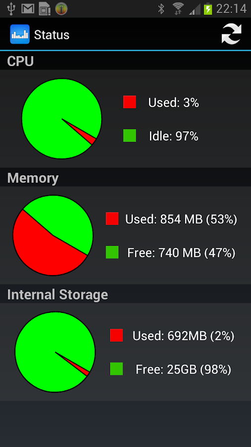 4. Estado: información de estado acerca de RAM, ROM y uso de la CPU.