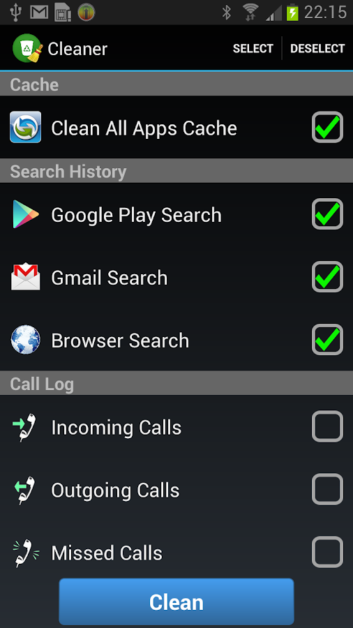 * Registro de llamadas Clean.