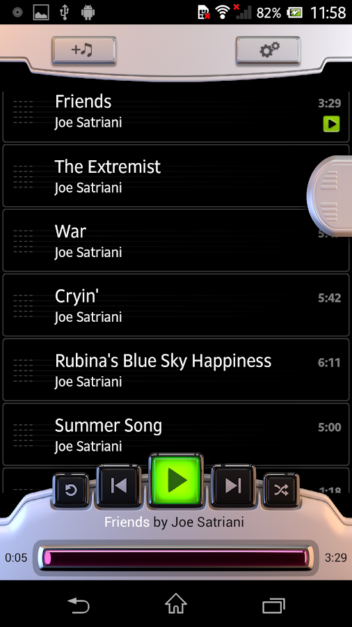 • Utiliza listas de reproducción Android. Reproducir álbumes o crear sus propias listas de reproducción de una lista de canciones.