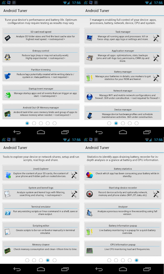 3C Toolbox Pro (aka Tuner Android) es el más completo que hay que tener caja de herramientas para la versión Android 2.3 hasta a L, ejecutar cualquier ROM o kernel.
