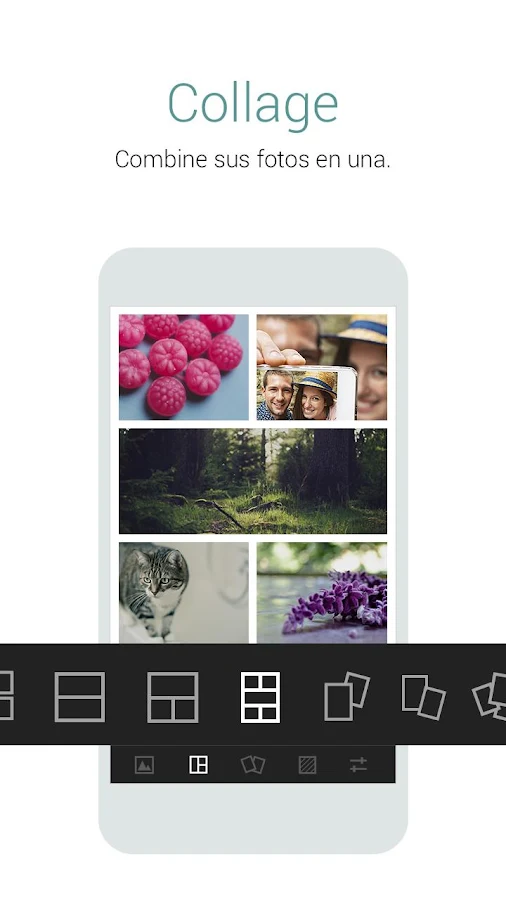 ■ Collages: Desde varios diseños de collage, hasta utilizar las características funciones de pegatinas, numerosas fuentes y estilos.
