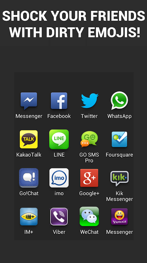 Usando su aplicación de chat favorito, vaya a adjuntar una imagen. Elige Dirty Emojis continuación, elegir un emoji sucia para compartir!