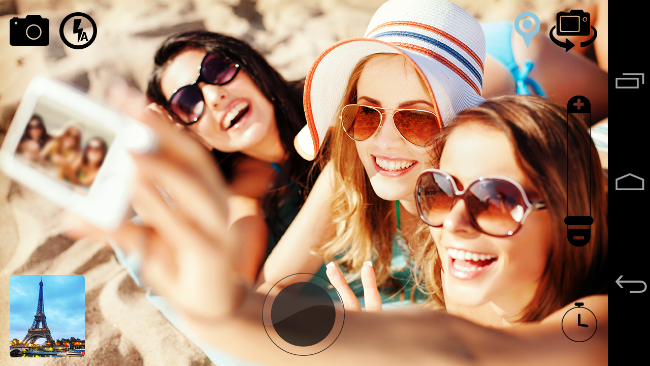 - Muchas características adicionales: Transformar imágenes sencillas o selfies en obras maestras utilizando varios modos de calidad profesional de edición de fotografías, filtros de fotos, balance de blancos, balance de color, nitidez y desenfoque, marcos de fotos. Compartir de forma instantánea mediante correo electrónico, Bluetooth, Google +, Facebook, Twitter, Tumblr, Google Drive, Dropbox, Instagram, Whatsapp y otras aplicaciones que están instaladas en el teléfono.