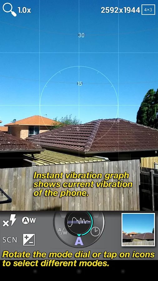 ★ virtuales lÃneas guÃa horizonte con pantalla de ángulo de paso. Con la ayuda del giroscopio, el horizonte virtual en PerfectShot es rápido y preciso. Su suavidad es 1000 veces mejor que los que utilizan el acelerómetro hecho en otras aplicaciones.