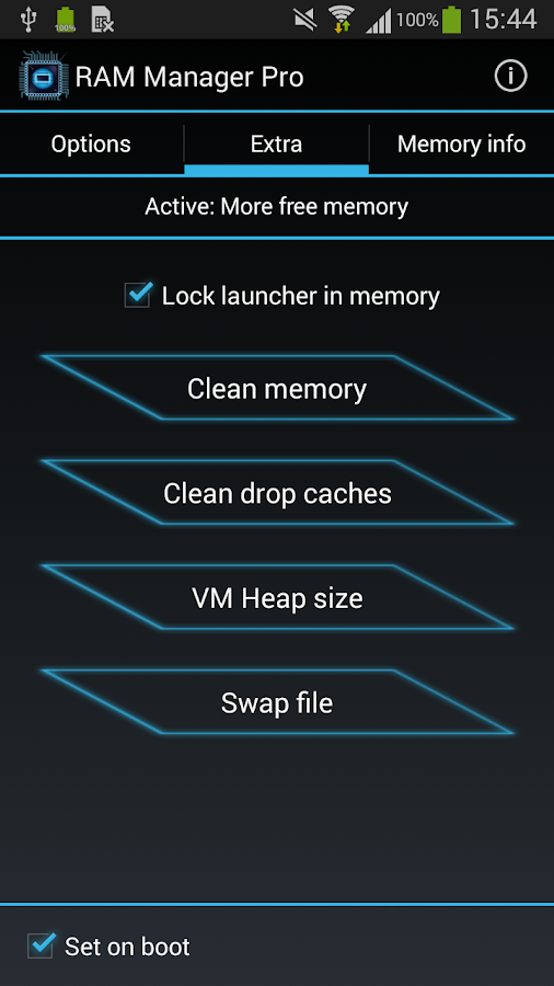 RAM Manager es la aplicación que optimiza la memoria RAM de todos los dispositivos Android y mantener el mejor equilibrio entre suficiente memoria libre y las aplicaciones en ejecución. Esta aplicación es la mejor solución para todos los que tienen problemas con la memoria libre, con la multitarea, con intercambio lento entre las aplicaciones, con bajo rendimiento o simplemente quieren mejorar el rendimiento en todas las direcciones.