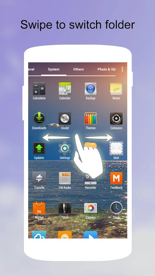- Deslice para abrir todos aplicación (Para hacer más simple lanzador, NO hay tradicional cajón de aplicación, en cambio, ofrecemos una rápida todas las aplicaciones)