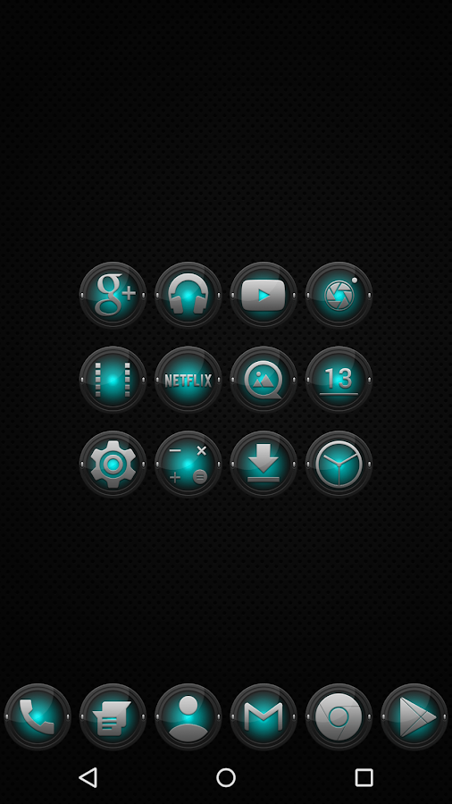 Un tema oscuro clásico para su dispositivo. Cada icono cuenta con elementos oscuros circulares, un gradiente interno vibrante y una capa brillante para la dimensión añadida. El complemento perfecto para los temas negro y cian!