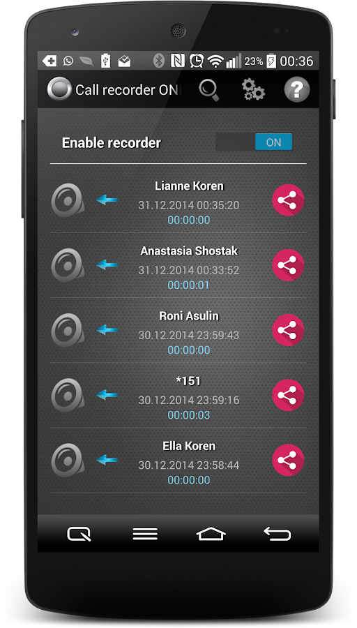 No todos los dispositivos admiten la grabación de llamadas sin ROOT, porque la grabación de llamadas es ilegal en algunos países, por ejemplo (Motorola, Nexus, HTC uno ...).