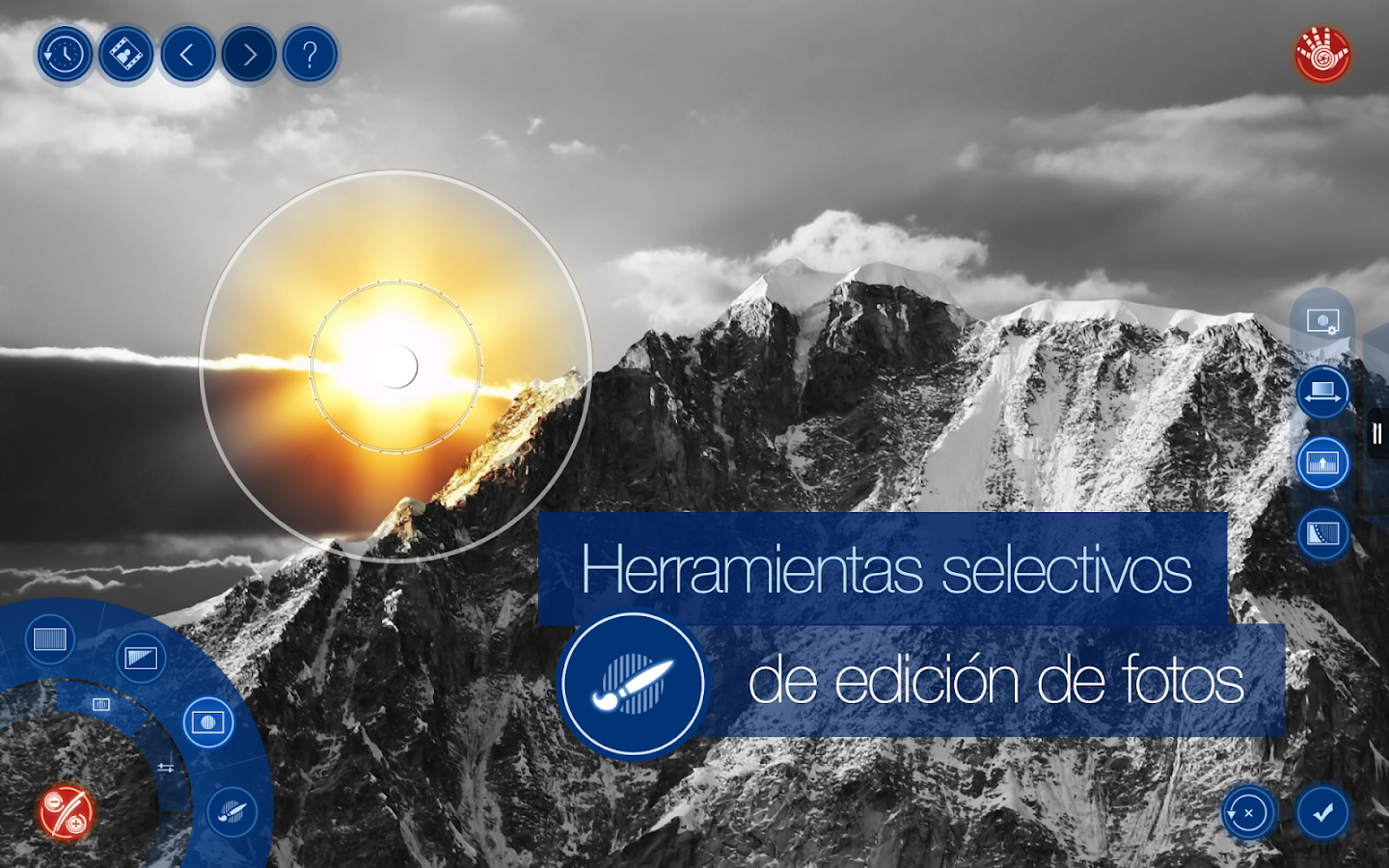 Con los filtros poderosos de Handy Photo, entre los cuales: Blanco y Negro, Bleach Bypass, Color Standout, Cross Process, Dramático, Duotone, Niebla, Brillo, Dorado, HDR, Halftone, Tinta, Lomo, Foto Antigua, Polarización, Polaroid, Sepia, Boceto, Smart Contrast, Tilt-Shift, Tiny Planet, Vignette y Vintage puedes añadir a tus imágenes cualquier efecto artístico. Los filtros se ajustan y, gracias a la característica de aplicación parcial, pueden combinarse fácilmente dentro de las fotos.