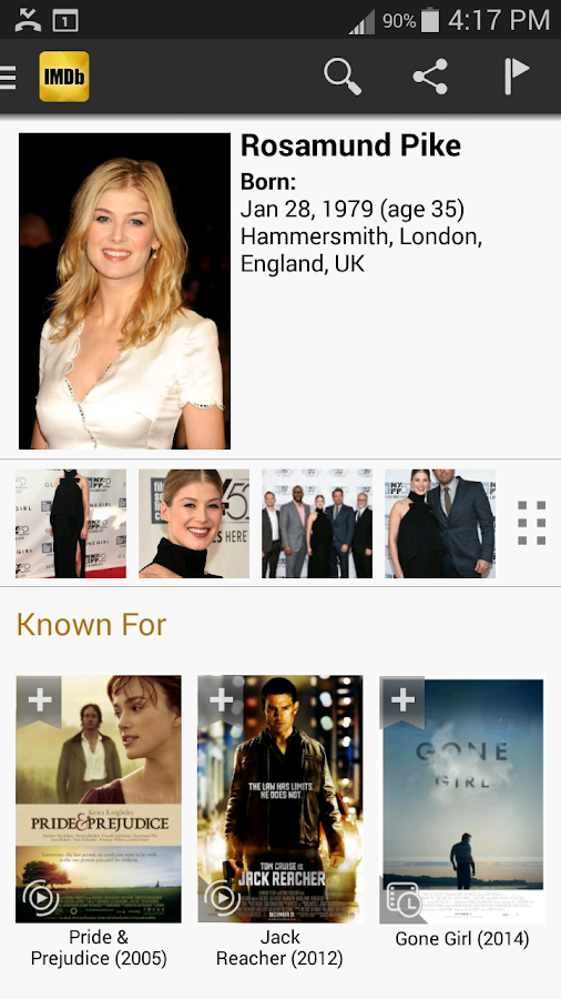MDb es el mayor sitio de información sobre películas, TV y celebridades. IMDb es la aplicación lider con la cual podrá encontrar películas en cartelera y horarios en Estados Unidos, ver trailers y galerías, programación de TV, lo último en DVD, explorar listas de popularidad y compartir información.
