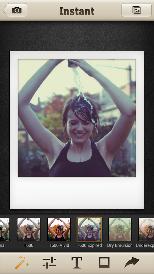 Instant trae la magia de la emblemática cámara instantánea Polaroid a tu teléfono Android. Con solo un toque, los usuarios pueden disparar una nueva foto con la cámara del teléfono inteligente o seleccionar una ya existente del álbum de fotos, aplicarle un auténtico filtro de estilo Polaroid, agregar un elegante borde y escribir sobre él para componer una clásica foto instantánea Polaroid.