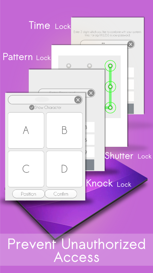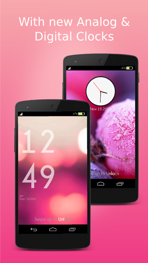 La pantalla de bloqueo es embellecida por fecha de encargo y formatos de tiempo con la impresionante HD Wallpapers! El camino para el desbloqueo es Ocultos! Sólo usted es capaz de acceder a su dispositivo o aplicaciones y evitar el acceso no autorizado o forzado.