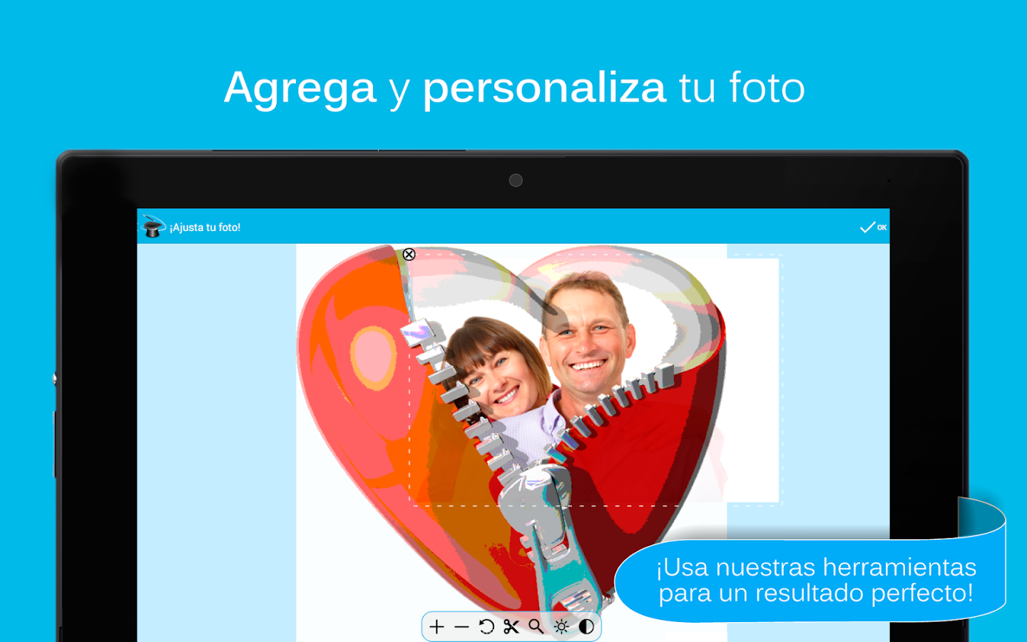 * Usa las fotos de tu galería, cámara y Facebook.