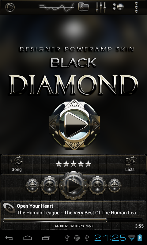 Instale Poweramp primero, luego la piel Diamante Negro Poweramp.