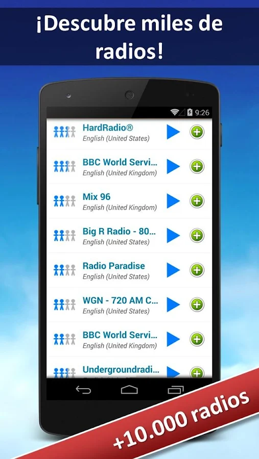 Tendrás acceso a toda nuestra base de datos con la que podrás escuchar decenas de miles de radios en todo el mundo. ¡Prueba cualquier emisora de radio y añádela a favoritos!