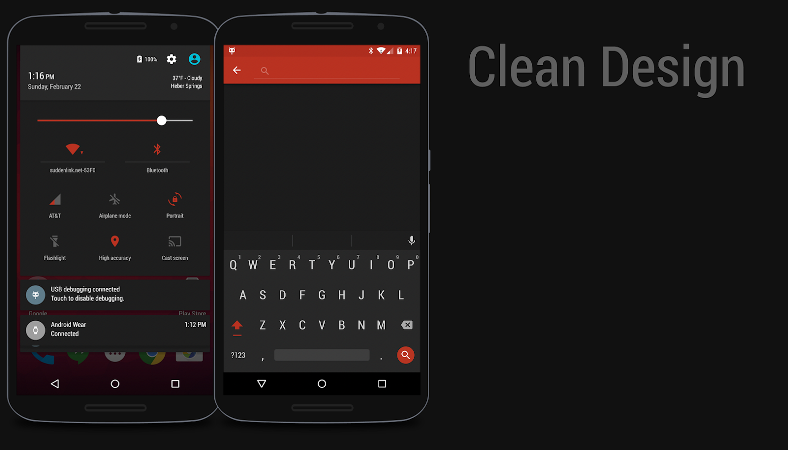 Rouge Theme es un tema que hace que la interfaz de usuario plana y minimalista mientras cambia el color por defecto de Android a un rojo intenso. Casi todo el tema se hace de una manera que se mantiene cerca de diseño stock para un limpio, cerca de la experiencia social.
