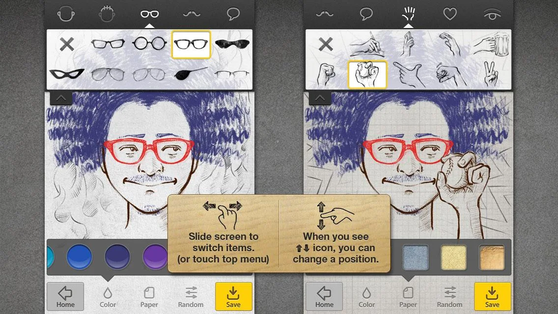 Uface es la herramienta de bosquejo de la cara más fácil para todos. puede crear todas las caras que desee mediante controles simples. Usted estará satisfecho con caras únicas y miradas divertidas hechas por varios elementos. Sorprende a tus amigos con imágenes de estilo dibujado a mano.
