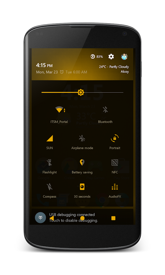 Tenga en cuenta que se necesita una ROM personalizada con el último motor CM Theme en orden para el tema a trabajar. Adicionalmente, es necesario reiniciar para aplicar plenamente el tema.