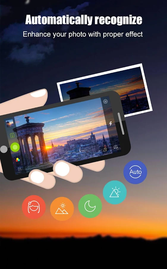 Puede reconocer y mejorar automáticamente el tipo de paisaje que quieras fotografiar. No tendrás que hacer nada más que pulsar el disparador, y obtendrás una imagen de alta calidad. Por ejemplo, llena de luz los lugares oscuros, añade más colores al paisaje, embellece un retrato de forma natural, etc.