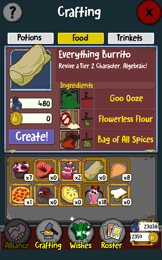 ¿Necesitas un empujoncito para vencer? ¡Toma la flauta de Finn o usa una magdalena monstruosa! Elabora comidas especiales y pociones mágicas que pueden ayudarte a ganar el combate.