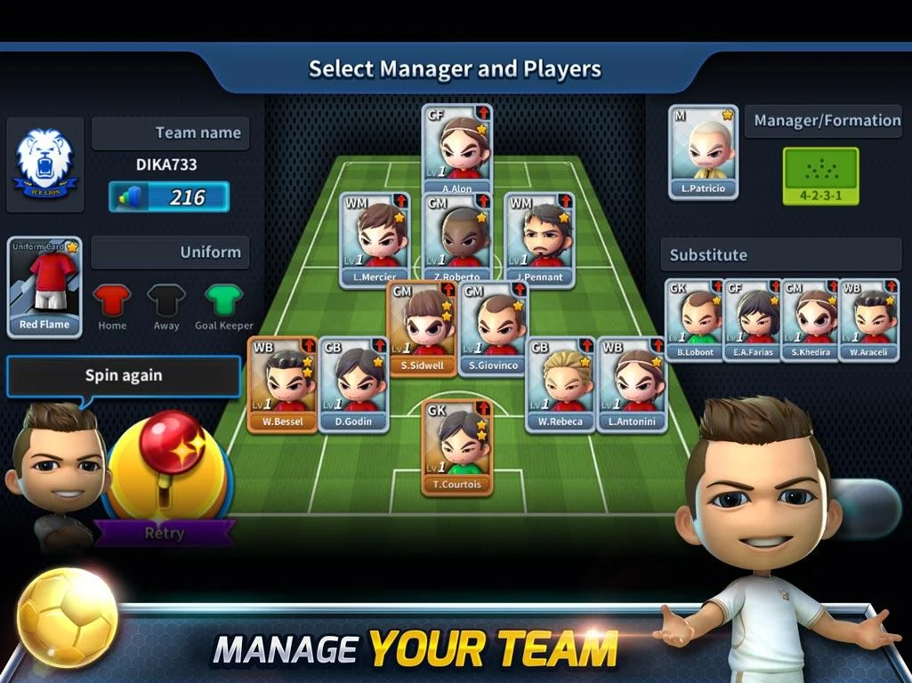 Administrar un equipo de jugadores reales de todo-estrella dentro Fútbol Huelga a medida que crea el club de sus sueños, y entrenar a los jugadores para traer gloria y el éxito de su equipo.