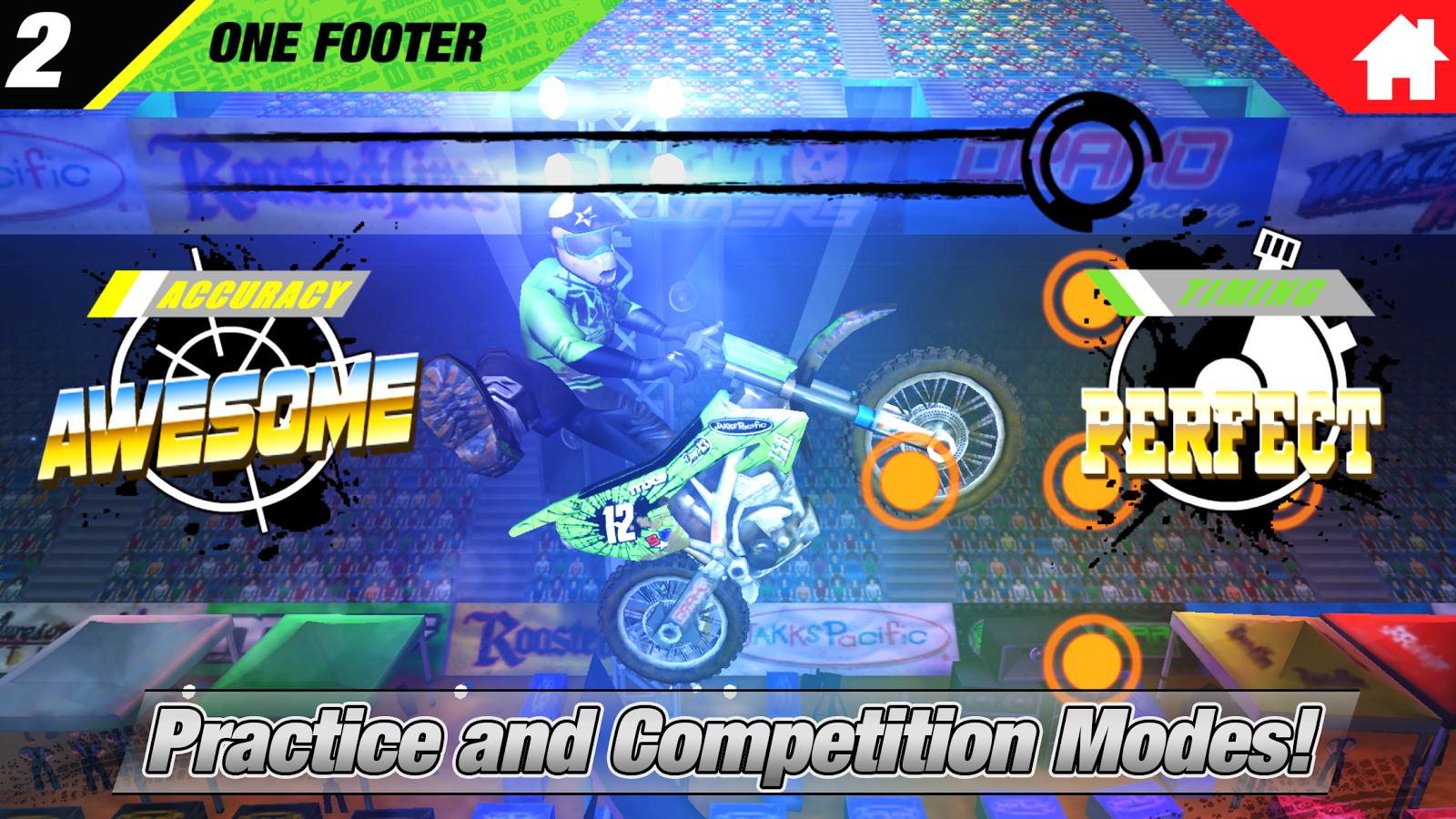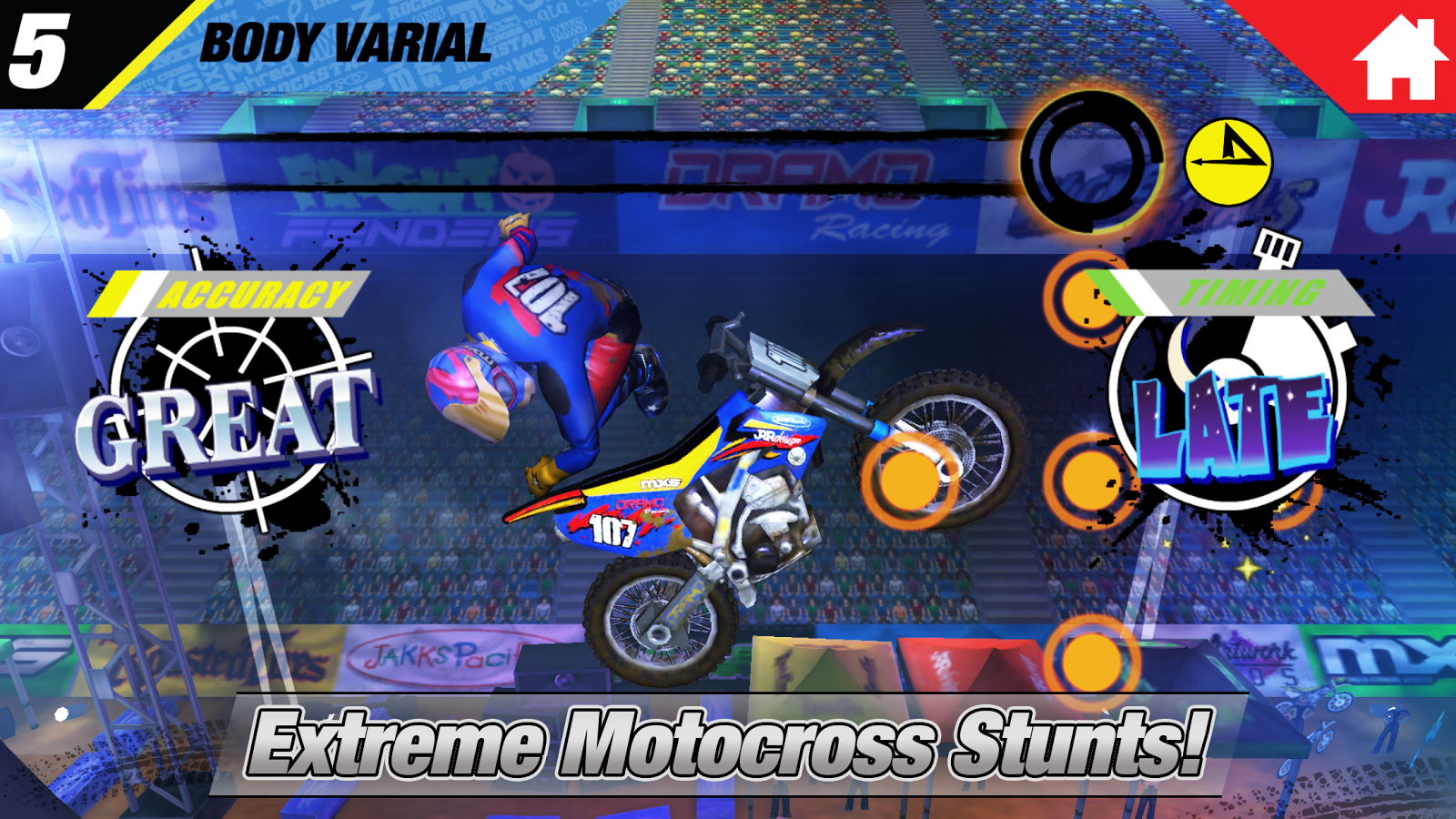 Entorno realista estadio, animaciones de acrobacias y secuencias de choque extremas! Mantenga perfeccionar sus movimientos para conseguir 3 estrellas en cada truco, e incluso ver cada truco en Instant Replay!