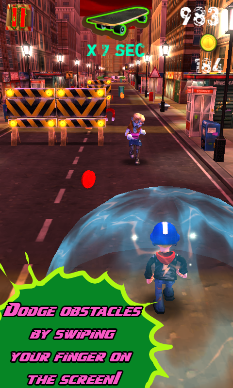 Utilice el monopatín y sus habilidades acrobáticas para conseguir a través de obstáculos y evitar que los coches fuera de control, y tomar ventaja de los barriles explosivos repartidos por todo el entorno para crear un infierno de fuego devastadora!