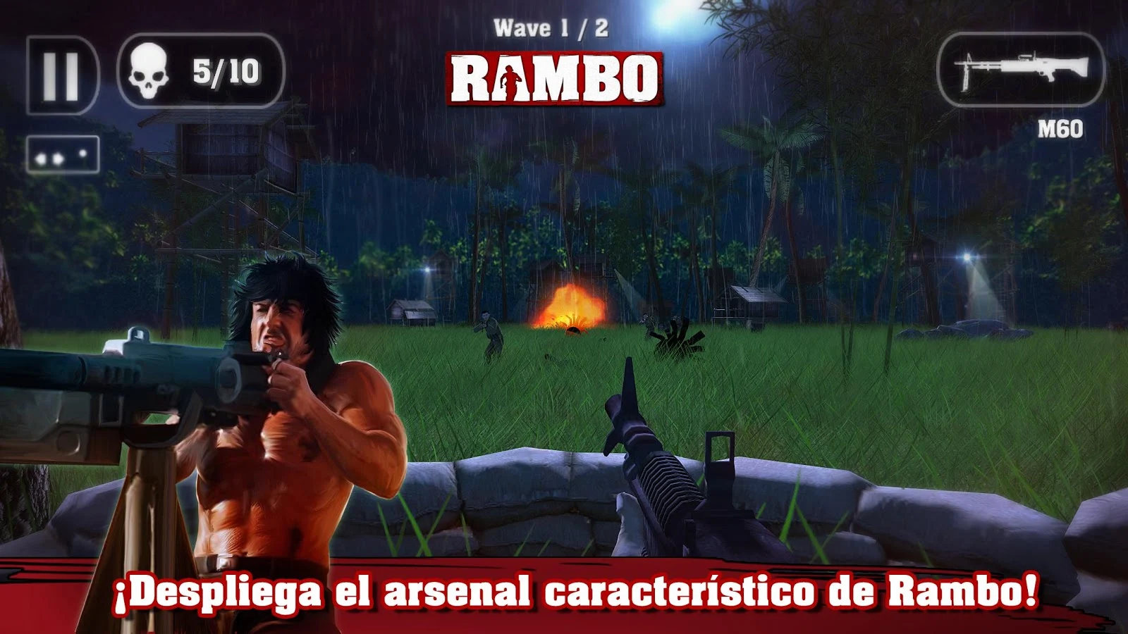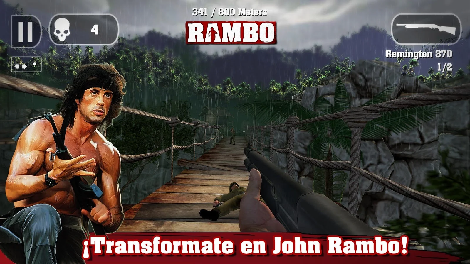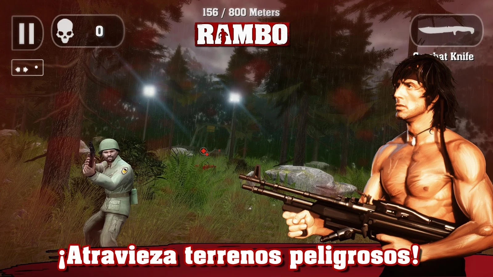 ¡Rambo es un hombre buscado y el enemigo usará cualquier arma para cazarlo!