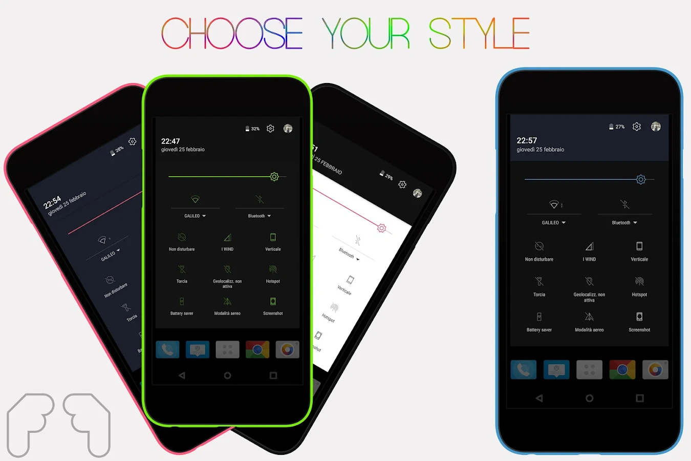 SystemUI (oscuro / claro, con diferentes estilos)