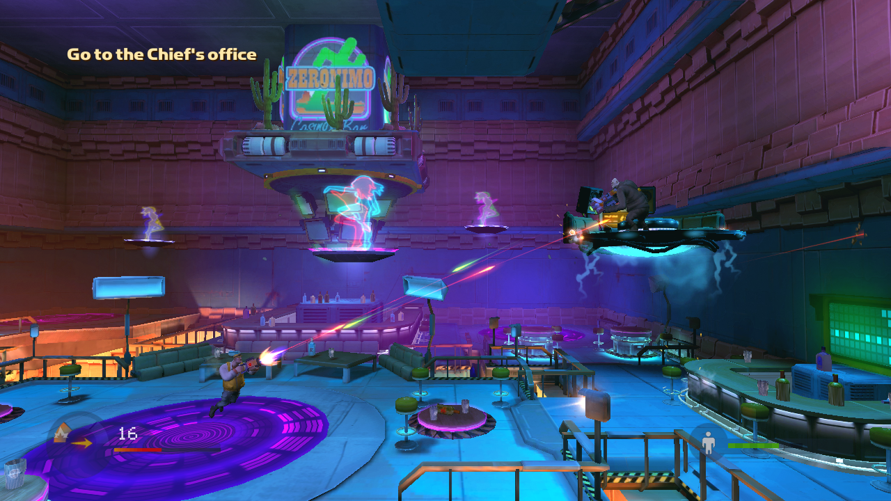Coge un G-Lifter: ¡tu nuevo mejor amigo! Úsalo para cambiar la gravedad a tu antojo, manipular el entorno y lanzar cajas enormes a tus enemigos.