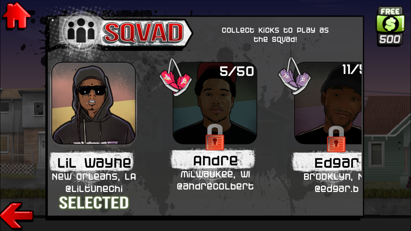 Sqvad Up es un juego de arcade de banda de vuelta lleno de acción inspirada por el amor de Lil Wayne de skate.