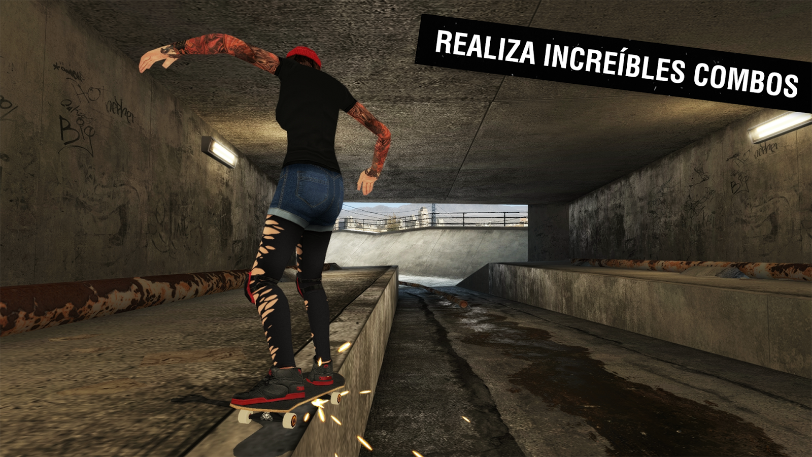 Juega con tus amigos usando el modo multijugador online o desafÃa a los skaters de todo el mundo en las tablas de clasificación. Completa más de 70 objetivos de nivel y logros, gana experiencia y mejora tu skater favorito con el atuendo más moderno. Personaliza tus equipos, zapatos, tablas, ejes y ruedas con marca registrada.