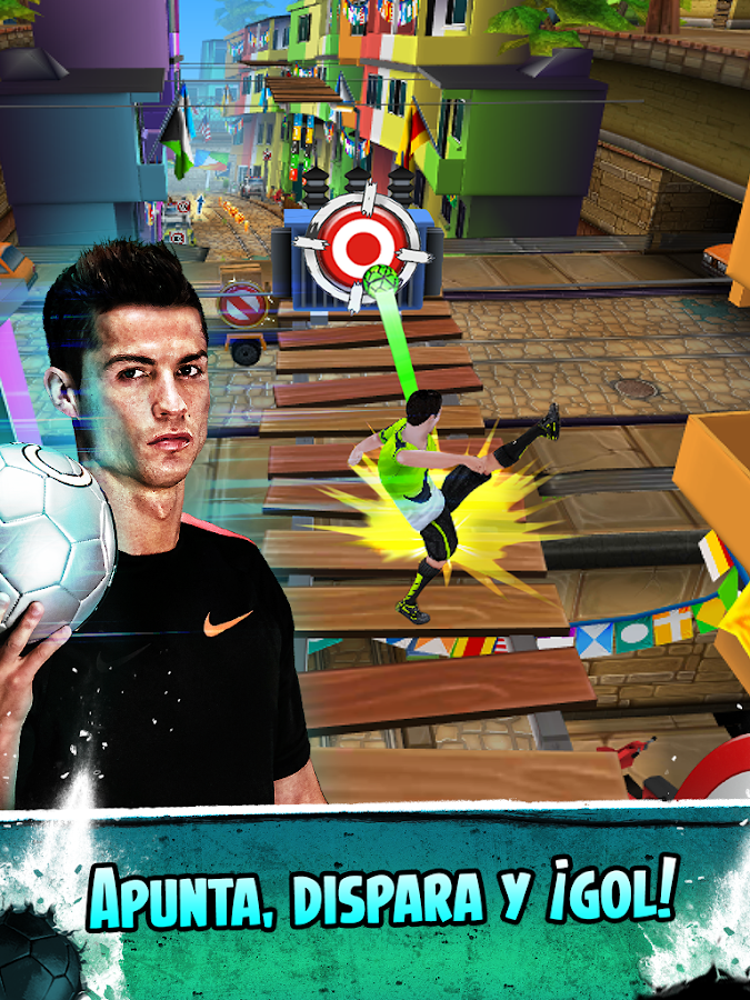 ¿Te gustaría calzarte las botas de Cristiano Ronaldo, uno de los mejores futbolistas del mundo? ¡Experimenta la sensación de chutar y correr como CR7 en este singular juego de habilidad y precisión! Conéctate a Facebook, esfuérzate por conseguir las máximas puntuaciones, ¡y a lo mejor acabas compitiendo nada menos que contra el mismísimo Cristiano Ronaldo!