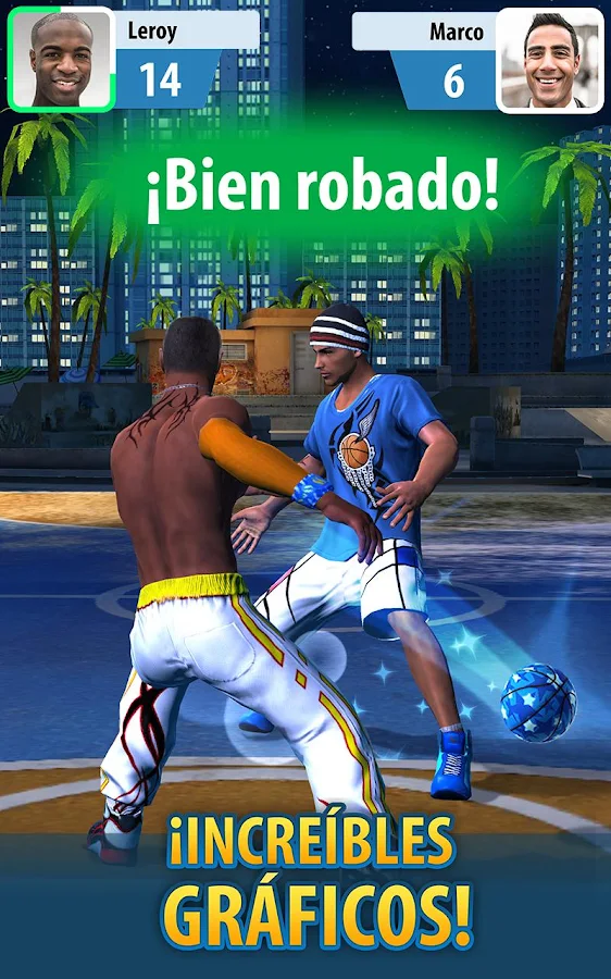 Disfruta del baloncesto dinámico de 1 contra 1. Demuestra tus habilidades, movimientos y regates, aplasta a tu rival ¡y encesta! En defensa no des un respiro al rival, roba el balón y domina los saltos para taponar sus lanzamientos. ¡EN TIEMPO REAL!