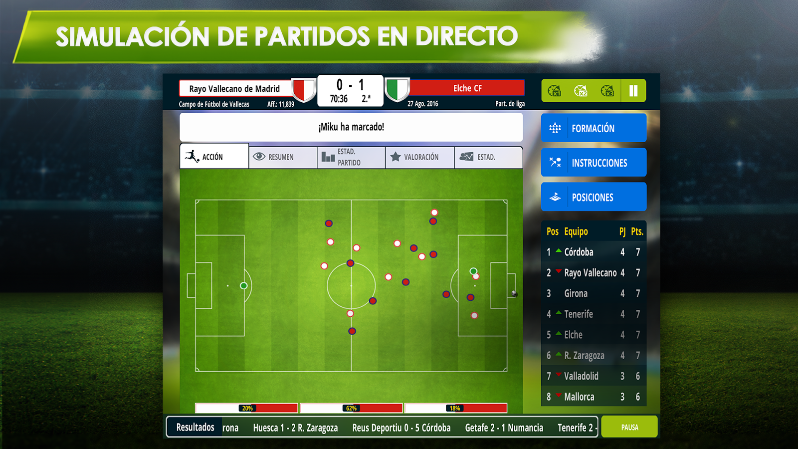 - Nueva interfaz fácil de usar. - Simulación visual de partidos para que vivas la emoción más de cerca. - Herramienta de entrenamiento intensivo con la que podrás mejorar rápidamente el rendimiento de tus jugadores. - Un segundo entrenador que te ofrecerá información y consejos esenciales sobre el club y tus rivales. - Misiones y retos semanales con los que ponerte a prueba y ganar divisa del juego. - Datos de jugadores, clubes y ligas de la temporada 2016/17 totalmente actualizados.