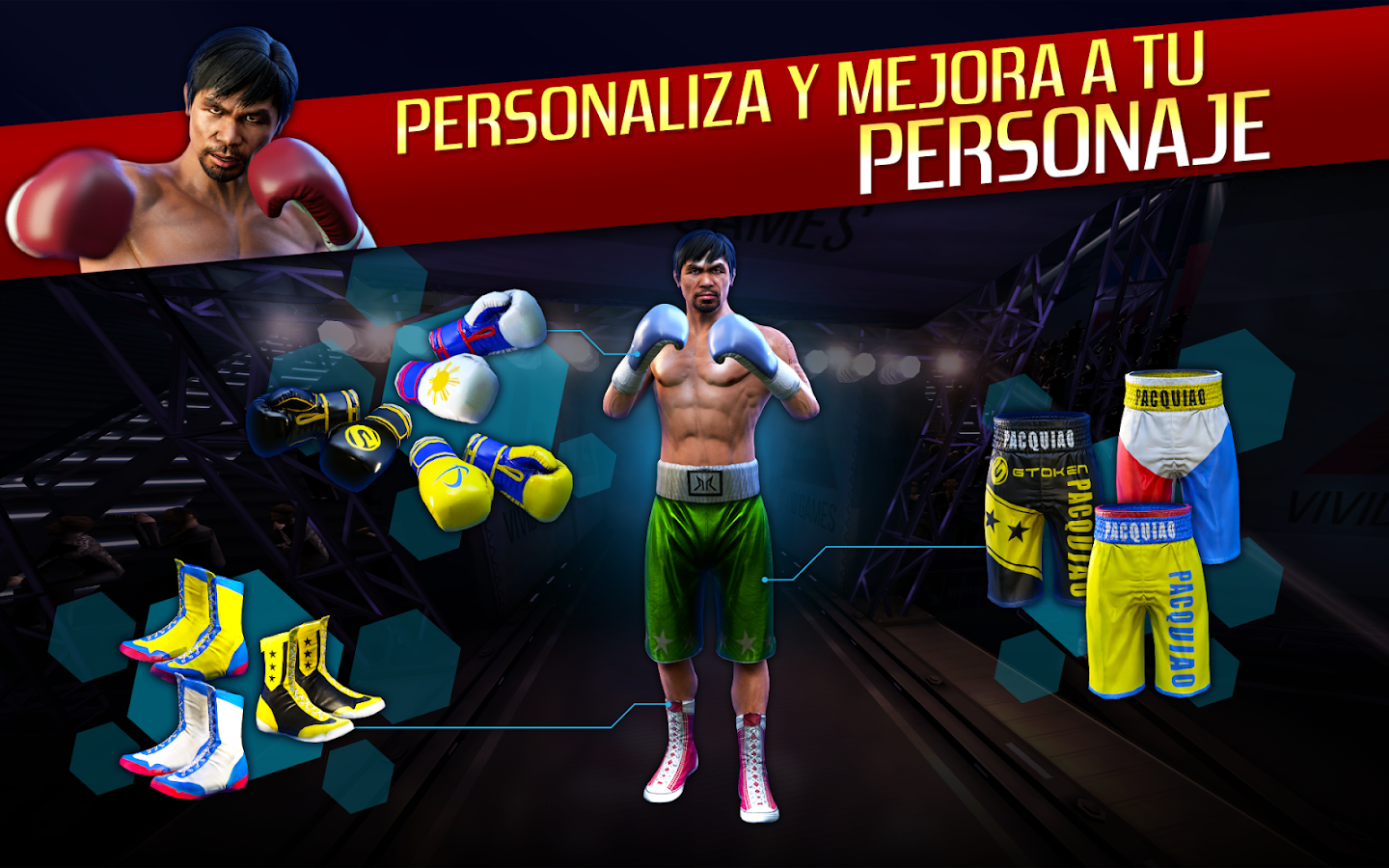 No solo puedes jugar a ser Manny, ¡también puedes usar su equipo de boxeo personalizado que hemos preparado especialmente para el juego!