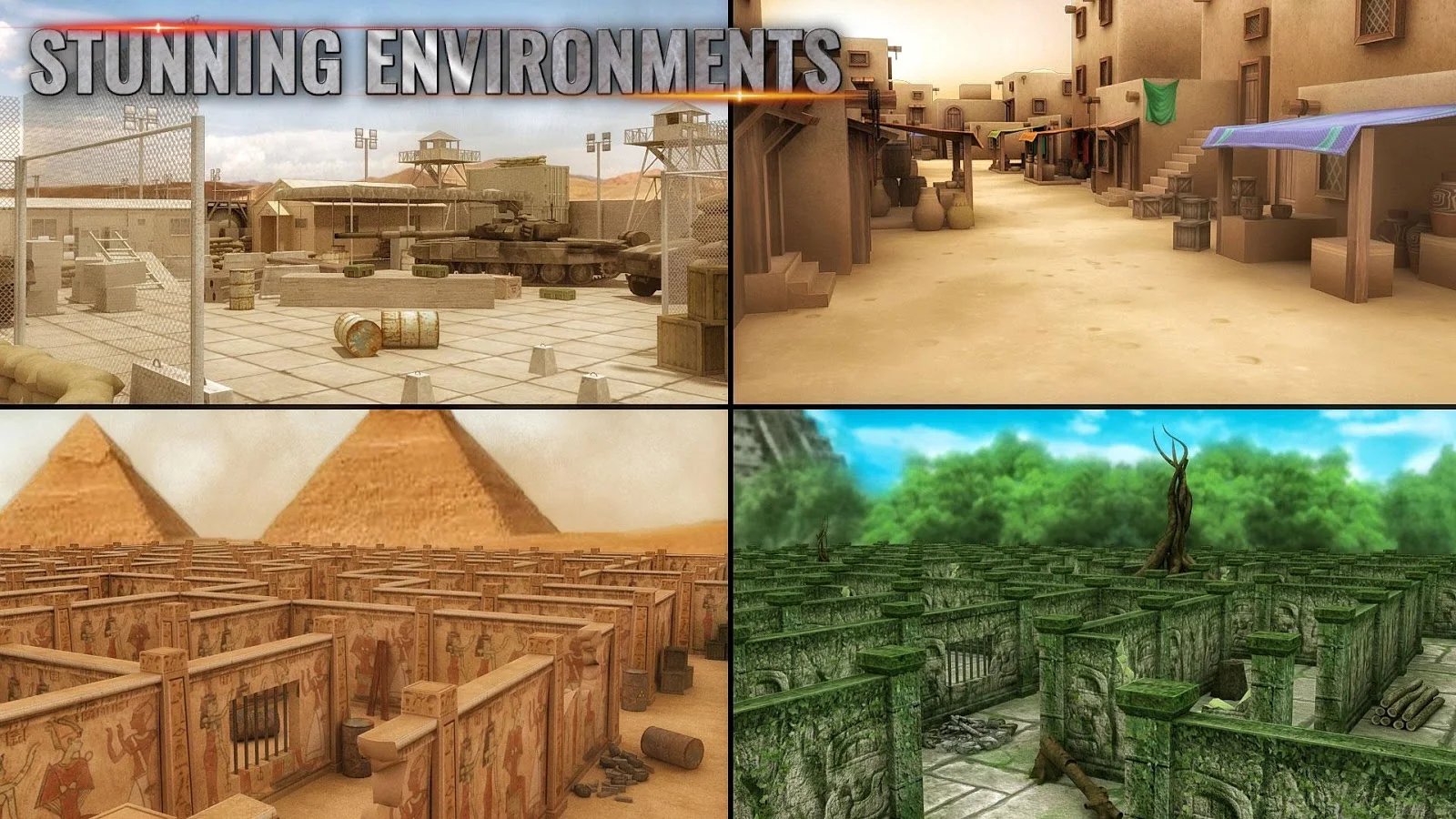 Luchemos con los atacantes reales en múltiples tipos diferentes de laberintos en modo de juego en línea y fuera de línea. Ingresa al campo de batalla con FPS, shooter en tercera persona con vista desde abajo de la cámara que puede cambiar en tiempo real por jugador. Mejora las barras de acción con tu experiencia dinámica de juego de disparos.