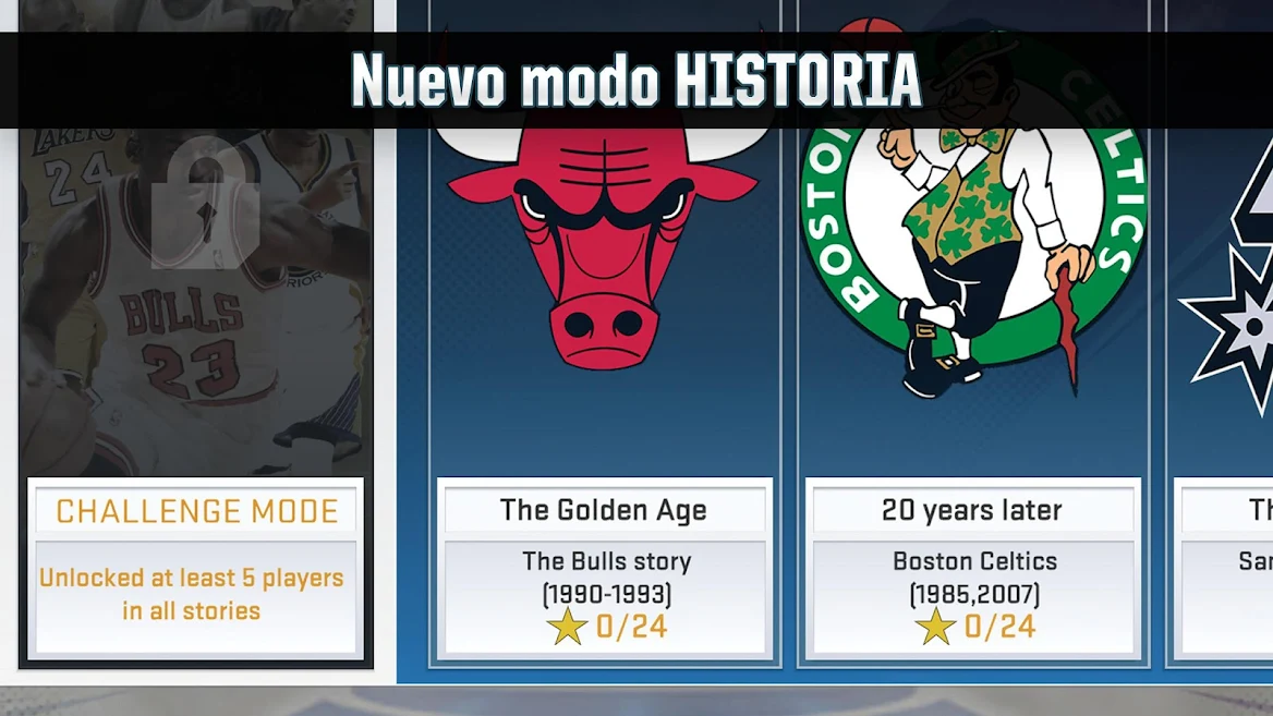 • Nuevo modo HISTORIA - Experimenta la historia de algunos de los equipos y jugadores más famosos de la NBA.