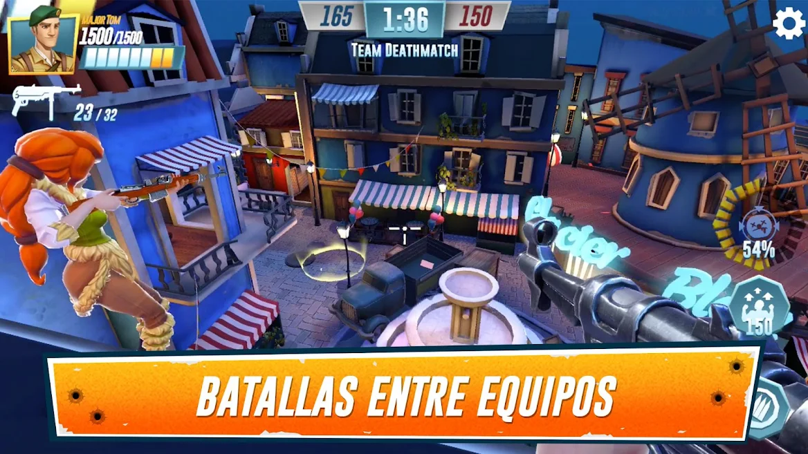 • Sistema de nivelación y avance de Héroes que te permite mejorar tus armas y habilidades para convertirte en un Combatiente Profesional