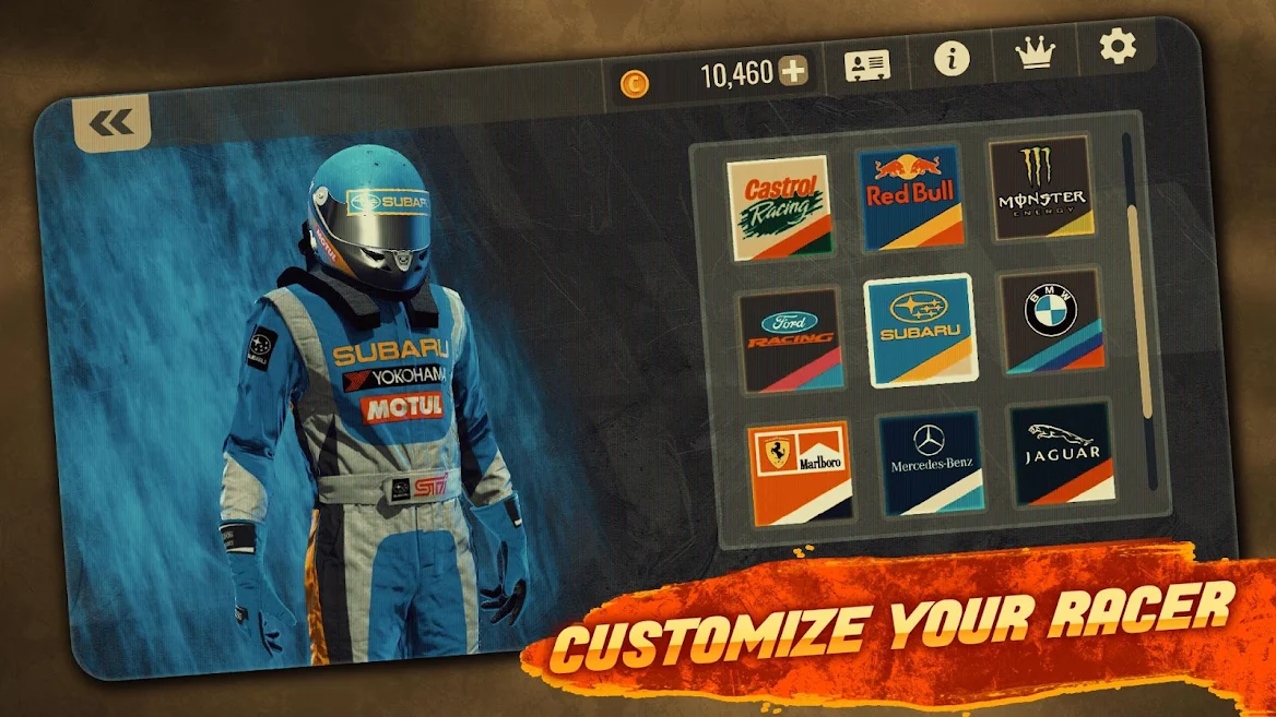 Únete a docenas de eventos de carreras, gana cientos de carreras, desbloquea trajes, cascos, guantes y conviértete en un verdadero piloto.